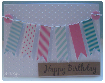 I simply stuck the tape to some white card and made some pennants and put them onto 3d foam to add dimension.