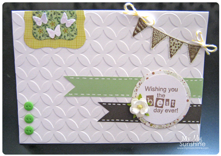 Today’s card is made using the Mojo Monday sketch 258. I love using embossing folders on the backgrounds of cards as they jazz the card up and really love this embossing folder. I used stickles glitter on the butterflies and Glossy Accents on the bunting to add more dimension.
