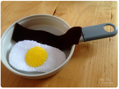 For the bacon I cut strips of felt and then stitched some lines with brown thread.