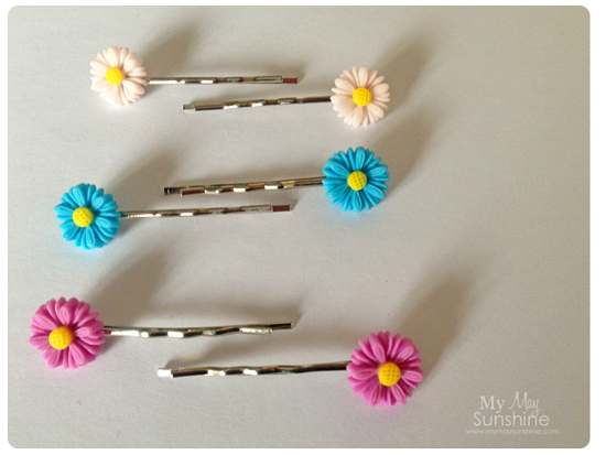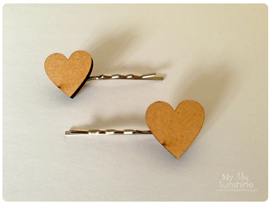 I made some pretty hair pins using the large rose cabochons, wooden hearts and daisies cabochons.