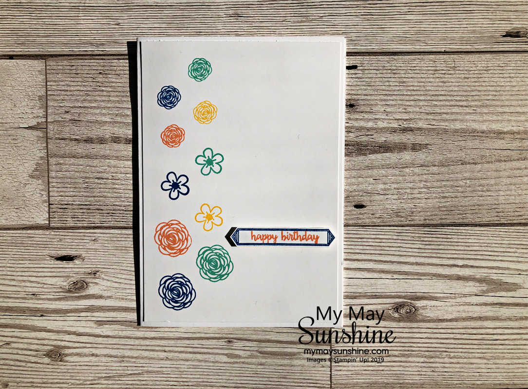 When I saw the sketch and the circles up the side, I decided to create a card with flowers going up the side.
