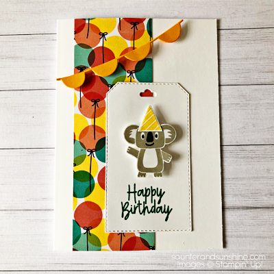 I used a strip of the balloon designer series paper for the background and chose to use the tag that comes in the bonanza dies to add the image.