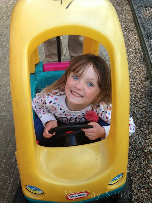 While walking around the park, we came across an abandoned car for toddlers that you can push them around in and Hollie decided she wanted to be pushed around in it. She enjoyed it.